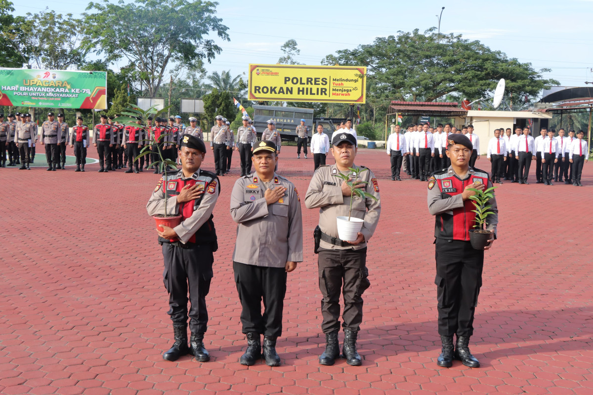Kepada personel yang berulang tahun yakni Aipda Roni Ronaldus Marbun, Bripka Akhim Barus dan Bripda Arinda Pradana, serta dihadapan Para Perwira Polres Rohil, Personel Polres Rohil. dan ASN Polres Rohil. Wakapolres Kompol Rikky Operiady menyampaikan bahwa pemberian bibit sebagai hadiah ulang tahun kepada Personel merupakan kepedulian terhadap personel dan simbol himbauan kepedulian terhadap keasrian lingkungan.