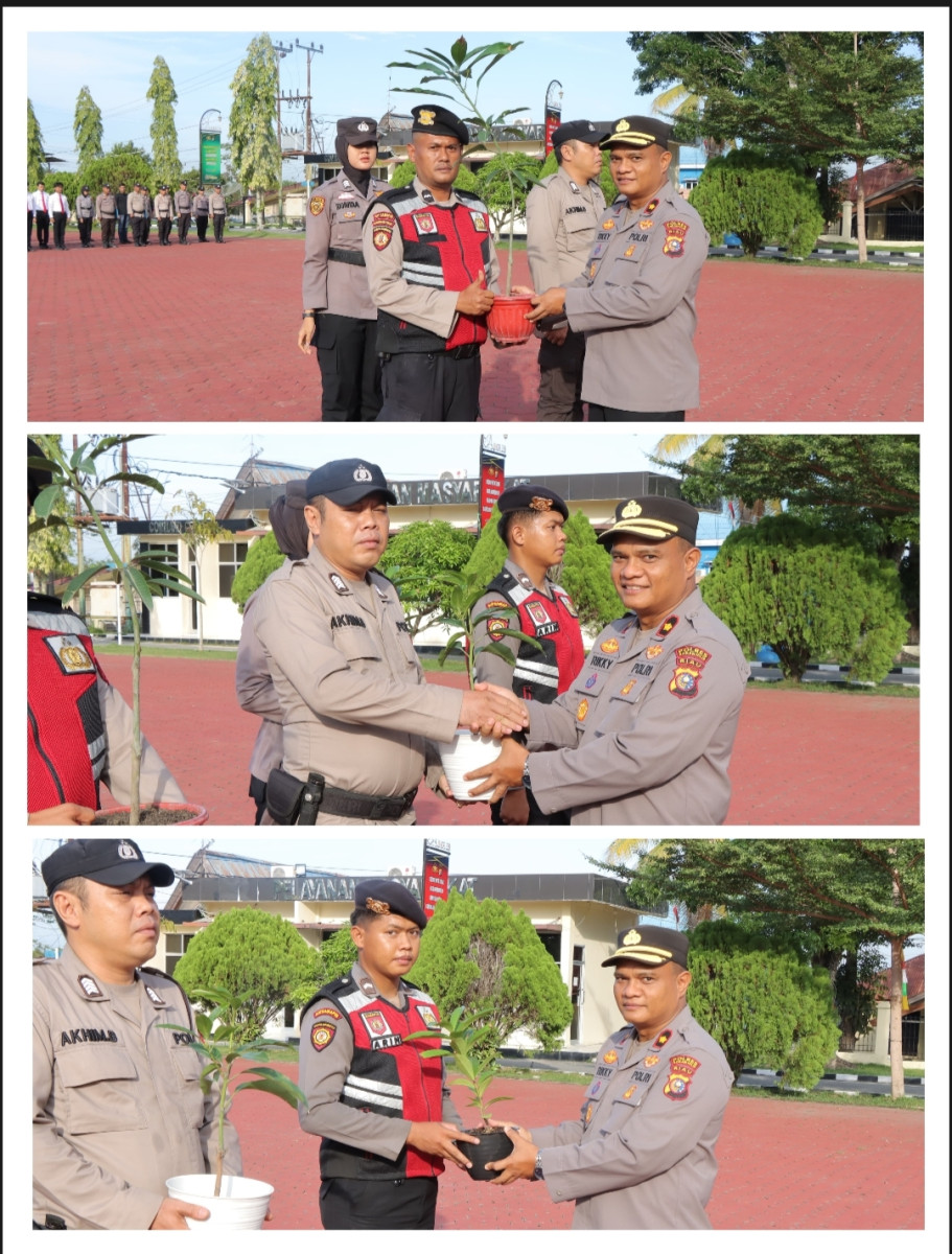 ROHIL, indonesiaclik.com || Bertempat di Halaman Apel Mapolres Rohil telah dilaksanakan Pemberian Bibit Pohon kepada Personel Polres Rohil yang berulang tahun. Kegiatan ini dipimpin oleh Wakapores Rohil Kompol Rikky Operiady, S.Sos.,S.I.K.,M.I.K. Senin 7 Juli 2025 Pukul 08.00 WIB.