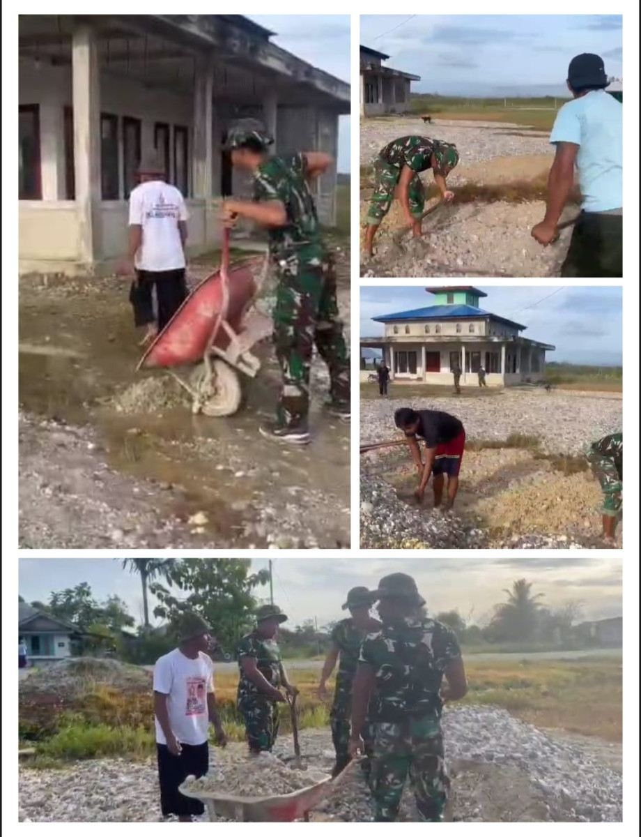 Fak Fak, indonesiaclik.com || Satgas Pamtas Yonif 642/Kps, Pos Tomage bersama masyarakat melaksanakan baksos (karya bakti), penimbunan halaman Masjid Az-Zumar di wilayah Kampung Warisa Mulya, Distrik Tomage, Kabupaten Fak-Fak, Papua Barat. (25/7/2025).