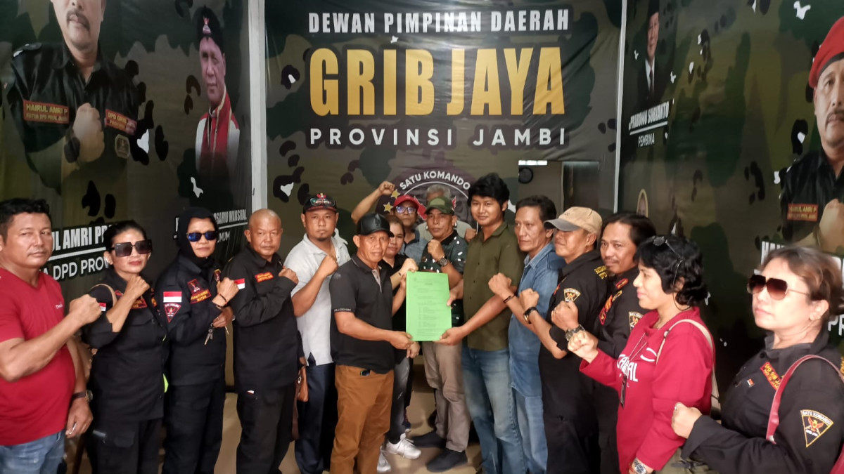 Jambi, indonesiaclik.com || Senin 28 Juni 2025 bertempat di kantor /Markas besar dewan pimpinan Daerah DPD GRIB JAYA provinsi Jambi,telah di laksanakan penyerahan secara resmi surat Mandat kepada ketua Dewan pimpinan cabang DPC GRIB JAYA Sarolangun yg baru.