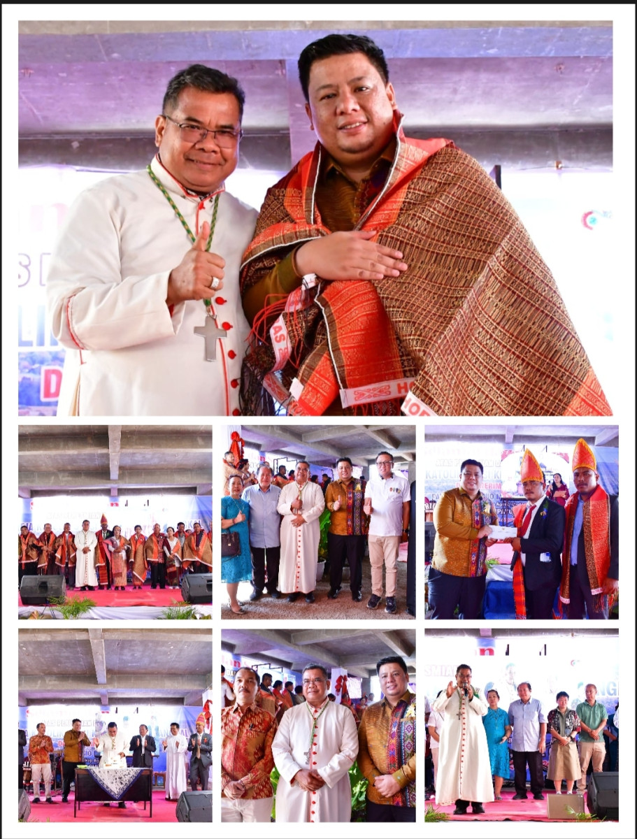 Kominfo Samosir, indonesiaclik.com || Bupati Samosir Vandiko T. Gultom bersama Uskup Agung Medan Kornelius Sipayung meneken prasasti Peresmian dan Pemberkatan Gereja Katolik Stasi Kristus Raja Sangkal Paroki Santo Antonio Maria Claret Tomok, 31/08.