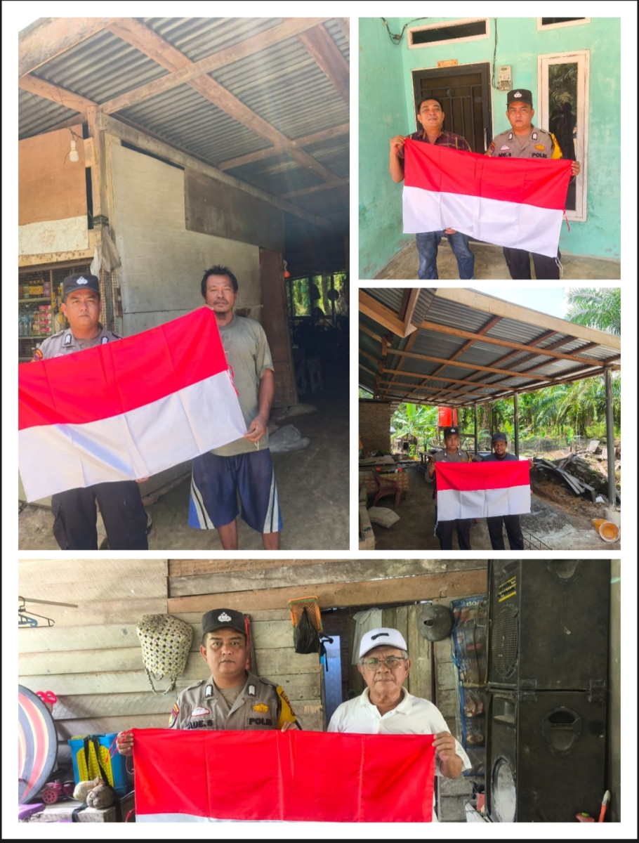 Dalam rangka menyambut HUT RI Ke 80, Kapolsek Rantau Kopar Bagi bagi Bendera merah putih kepada warga