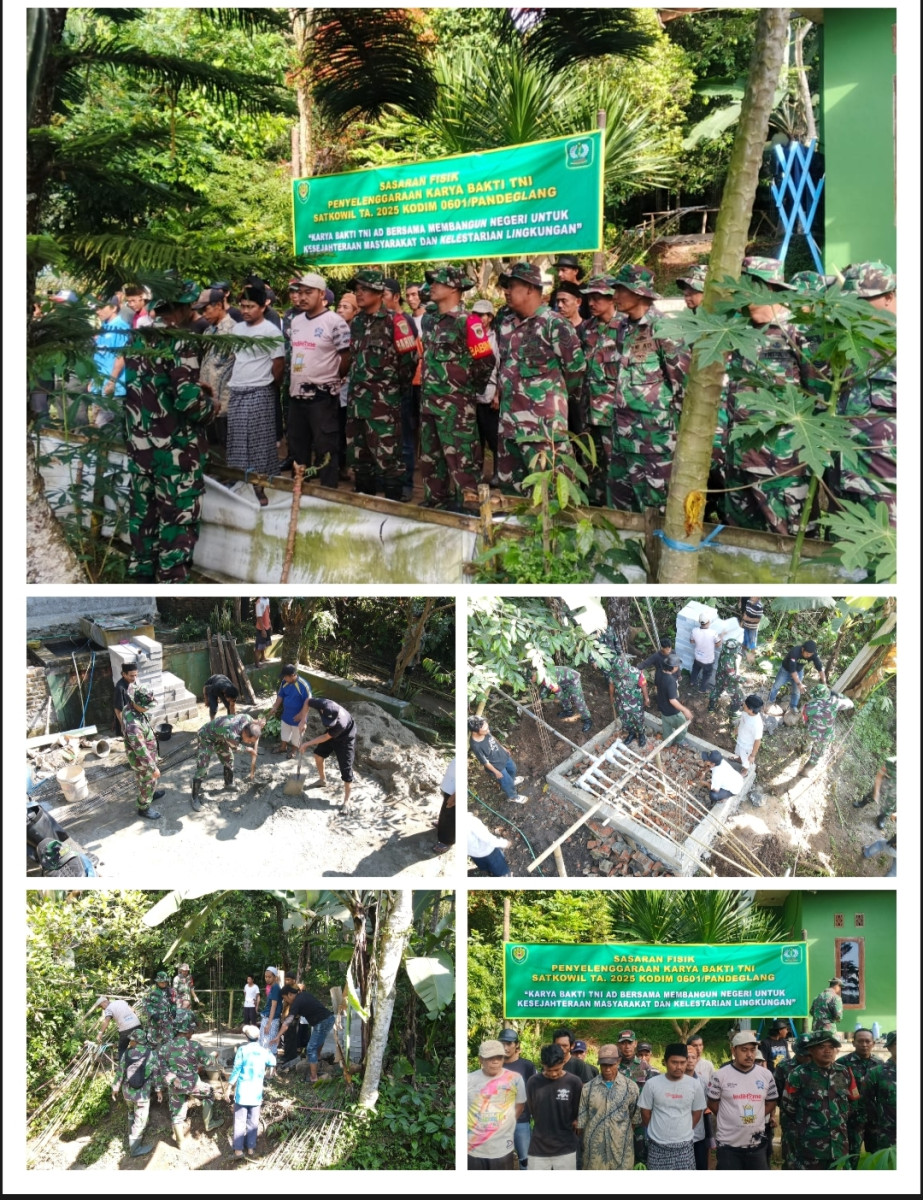 Pandeglang, indonesiaclik.com || Kodim 0601/Pandeglang melaksanakan Program Karya Bakti TNI Satkowil Tahun 2025 dengan mengusung tema “Karya Bakti TNI AD Bersama Membangun Negeri Untuk Kesejahteraan Masyarakat dan Kelestarian Lingkungan”. Kegiatan ini dipusatkan di Kampung Cengkel RT 002 RW 004 Kelurahan Cilaja, Kecamatan Majasari, Kabupaten Pandeglang, Selasa (26/08/2025).