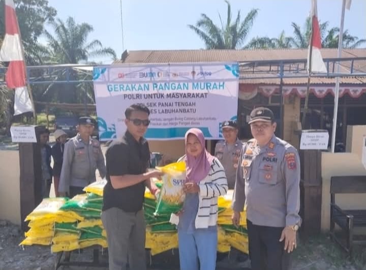 Polsek Panai Tengah Salurkan 2 Ton Beras Lewat Gerakan Pangan Murah
