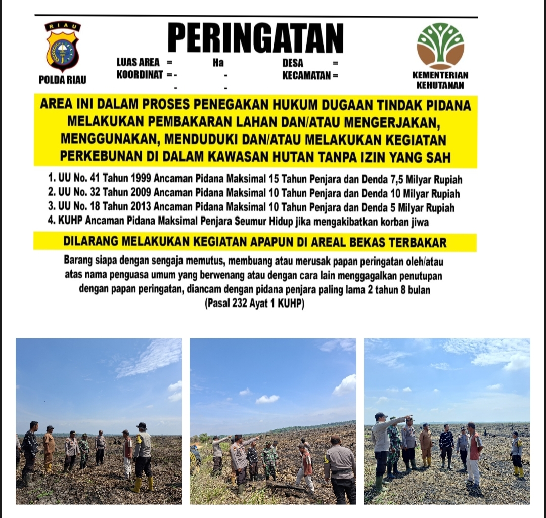 Sesuai dengan arahan Kapolres Rokan Hilir AKBP Isa Imam Syahroni SIK. MH. Melalui Kapolsek Simpang Kanan juga meminta kepada aparat pemerintah setempat agar tidak memberikan ruang bagi masyarakat melakukan segala kegiatan dan aktivitas apapun dilokasi lahan bekas terbakar tersebut karena dilahan tersebut juga masih dilakukan proses penyelidikan hukum.