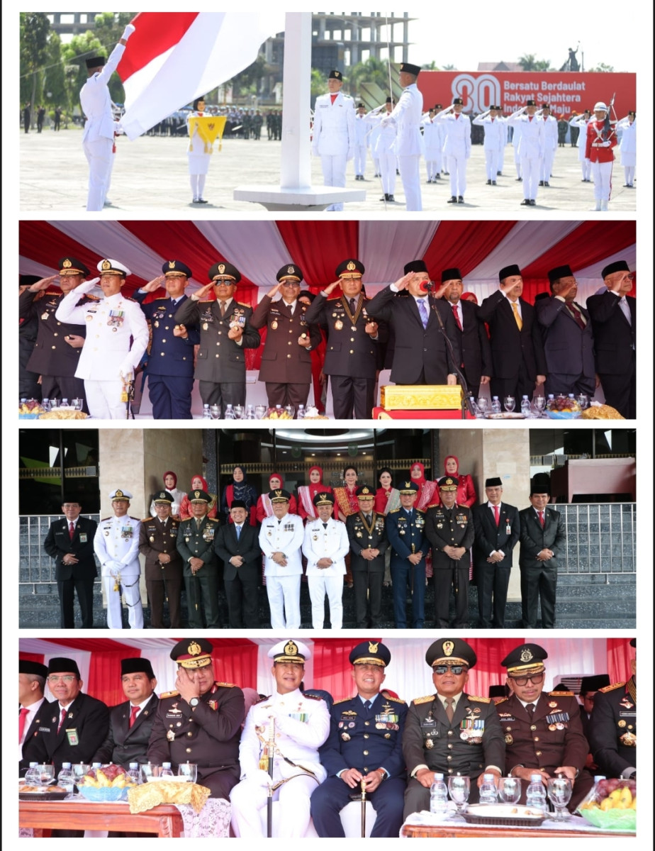 “Delapan puluh tahun Indonesia merdeka adalah anugerah besar dari Allah SWT yang wajib kita syukuri. Tugas kita hari ini adalah melanjutkan perjuangan para pendiri bangsa dengan memberikan pengabdian terbaik bagi masyarakat, bangsa, dan negara,” ujar Gubernur Riau.