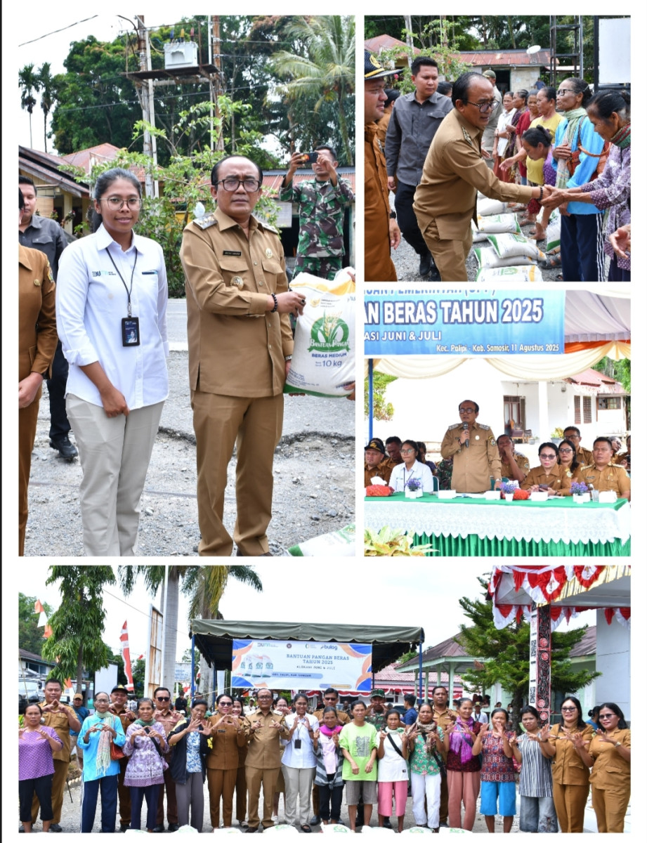 Penyaluran Cadangan Pangan Pemerintah (CPP) untuk Pemberian Bantuan Pangan Beras Alokasi Juni dan Juli 2025 ini di Kabupaten Samosir telah dilaksanakan mulai hari Kamis (7/8)yang lalu di Kecamatan Pangururan dan Kecamatan Ronggur Nihuta, dan hari Jumat (8/8) di Kecamatan Nainggolan dan Kecamatan Onan Runggu. Dan untuk hari ini, Senin (11/8) di Kecamatan Palipi, Kecamatan Sitio tio, Kecamatan Sianjur Mulamula, Kecamatan Harian dan Kecamatan Simanindo.
