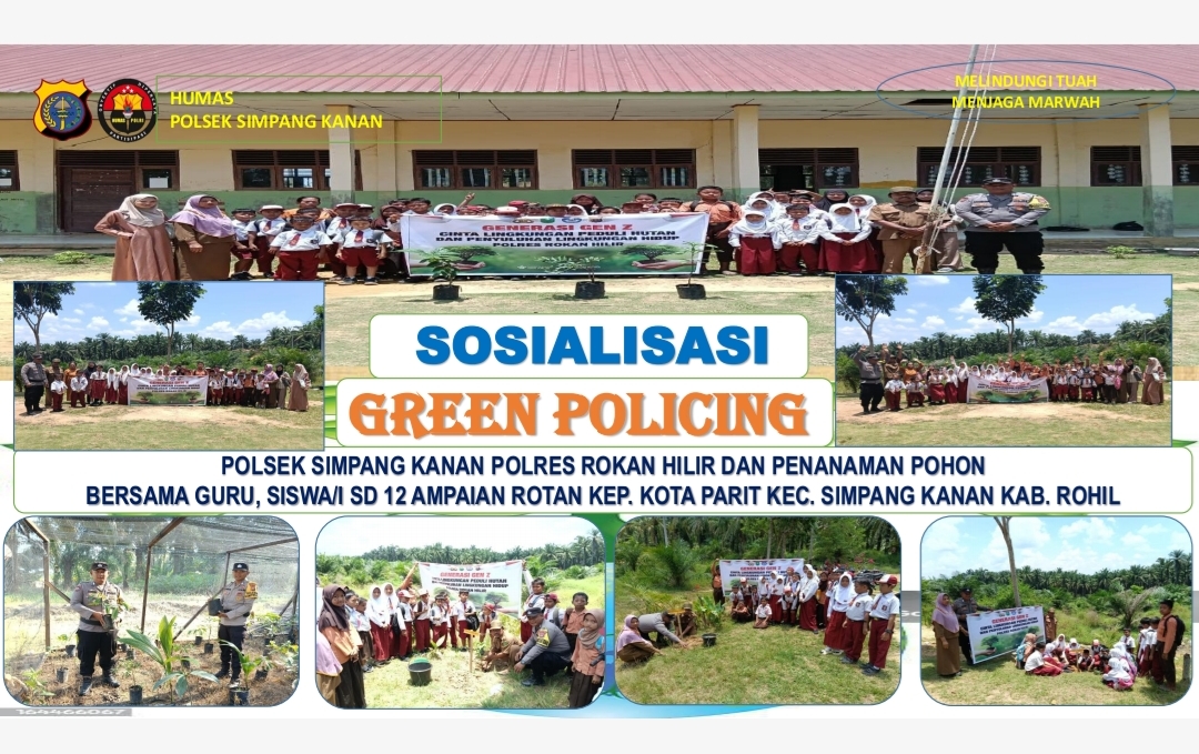 Simpang Kanan, indonesiaclik.com || Untuk menindak lanjuti program green policing secara berkesinambungan Polsek Simpang Kanan hari ini Rabu tgl 24 September 2025 pada pukul 10’00 wib melakukan kegiatan penanaman pohon bersama siswa sekolah dasar (SD) 12 Ampaian Rotan di Jalan Simpang Kelapa rt. 02 rw. 02 Dusun Ampaian Rotan Kepenghuluan Kota Parit Kec. Simpang Kanan Kab.Rokan Hilir.
