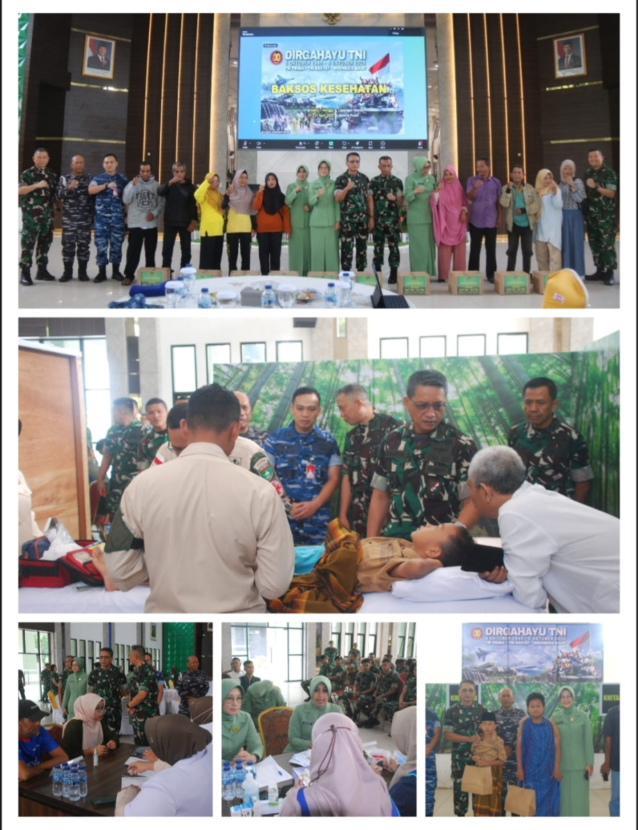 PEKANBARU, indonesiaclik.com || Dalam rangka memperingati Hari Ulang Tahun ke-80 Tentara Nasional Indonesia (TNI) tahun 2025, Kodam XIX/Tuanku Tambusai melaksanakan kegiatan Bakti Sosial (Baksos) Kesehatan Serentak sekaligus penyerahan paket sembako kepada masyarakat pada Minggu, 21 September 2025, bertempat di Aula Kaharudin Nasution, Makodam XIX/TT.