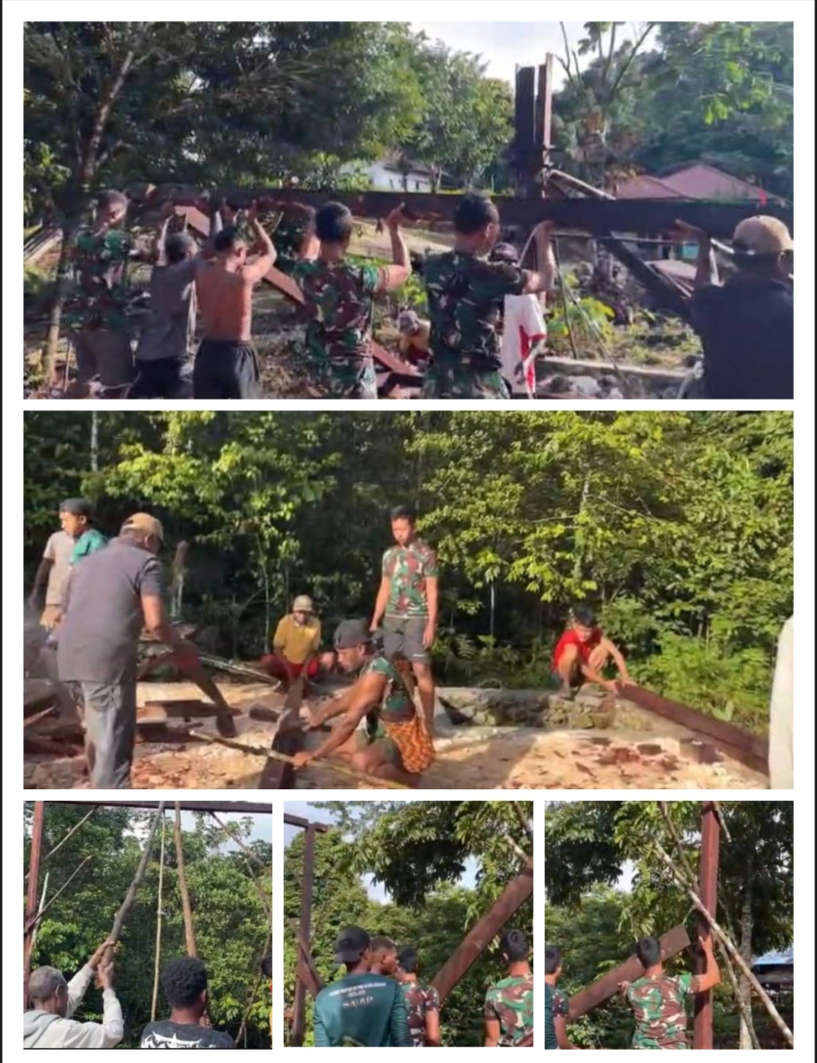 Kampung Subin, indonesiaclik.com || Dalam semangat gotong royong dan kepedulian sosial, Pos Subin yang dipimpin oleh Danpos Subin Letda Inf Zaki Arkan Rachman, S.Tr.Han, bersama anggota pos dan masyarakat Subin melaksanakan pembangunan rumah masyarakat yang ada di kampung Subin. Kegiatan ini merupakan wujud nyata dari sinergi antara TNI dan masyarakat dalam meningkatkan kesejahteraan dan kualitas hidup warga. (18/9/2025).