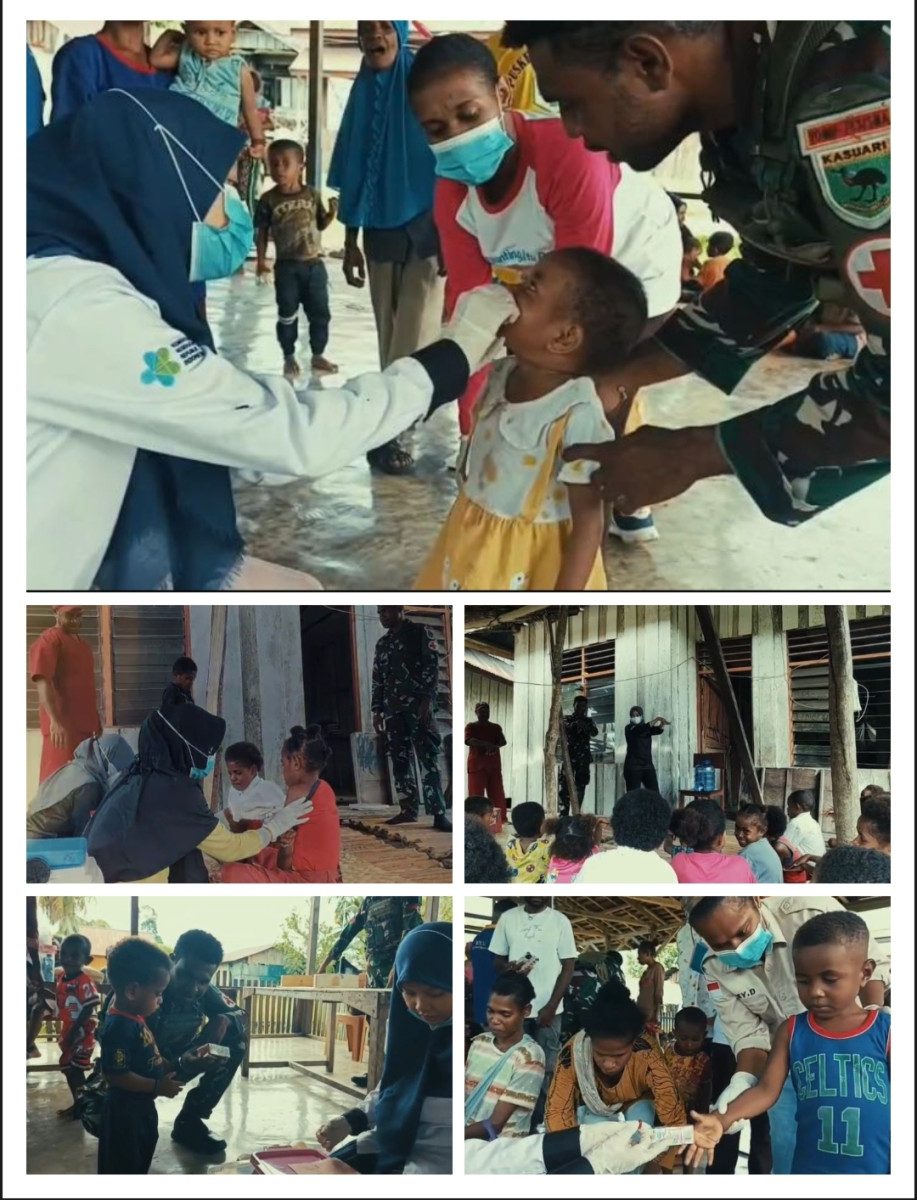 Satgas Pamtas Kewilayahan Yonif 763/SBA Pos Kokoda Bersama Puskesmas Laksanakan Yankes Keliling