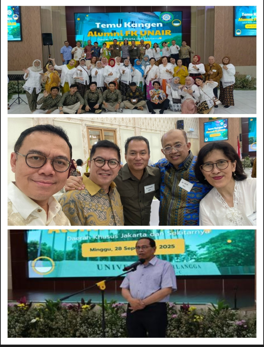 JAKARTA, indonesiaclik.com || 30 September 2025 – Temu Kangen merupakan Kegiatan Rutin yang diselenggarakan oleh Alumni FK Univ. Airlangga yang berdomisili di Jakarta dan sekitarnya dengan tujuan mempererat tali silaturahmi, jejaring profesi antar Alumni, berbagi Pengetahuan dan Pengalaman serta bagian dari bentuk Tridarma Perguruan Tinggi yaitu Pengabdian kepada Masyarakat.