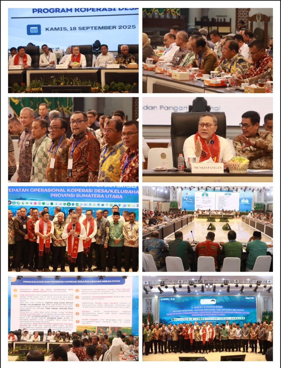 Rapat ini dibuka secara resmi oleh Wakil Gubernur Sumut, H Surya, B.Sc dan turut dihadiri oleh sejumlah pejabat nasional, antara lain Ketua Satgas Nasional KDMP yang juga Menteri Koordinator Bidang Pangan Zulkifli Hasan (Zulhas), Wakil Menteri Dalam Negeri Bima Arya Sugiarto, serta Kepala Badan Pangan Nasional Arief Prasetyo Adi dan jajaran Kementerian Koordinator Bidang Pangan