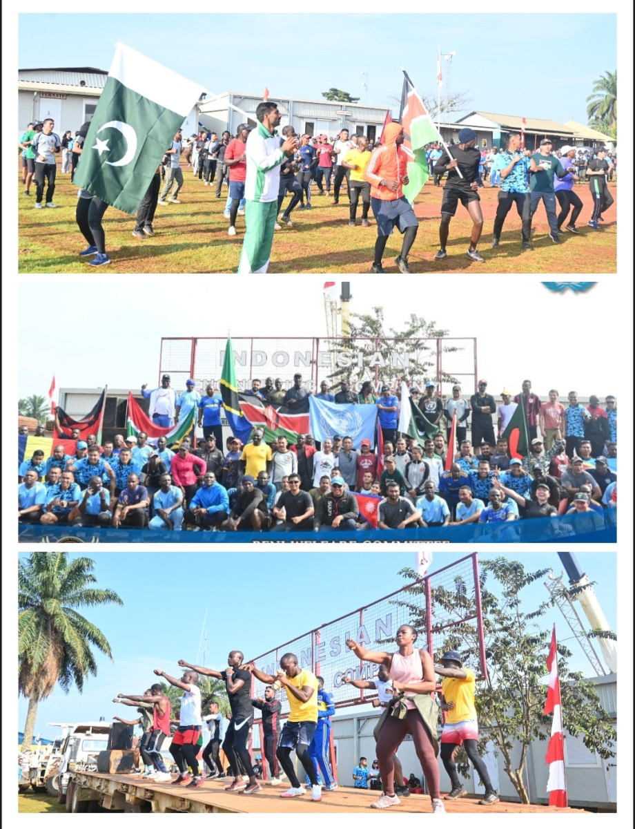 Kegiatan dimulai pukul 06.45 pagi dengan jalan santai sejauh 5 kilometer yang diikuti oleh personel dari berbagai kontingen serta staf sipil di area Mavivi, Beni. Rute berjalan melewati area sekitar base yang dikelilingi pemandangan hijau dan udara segar pagi hari, menciptakan suasana penuh semangat dan kebersamaan.